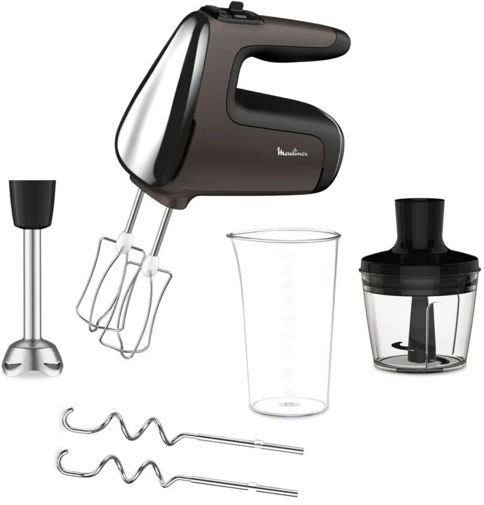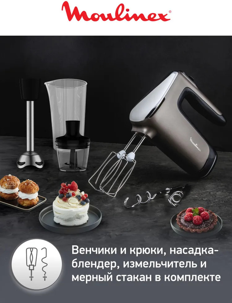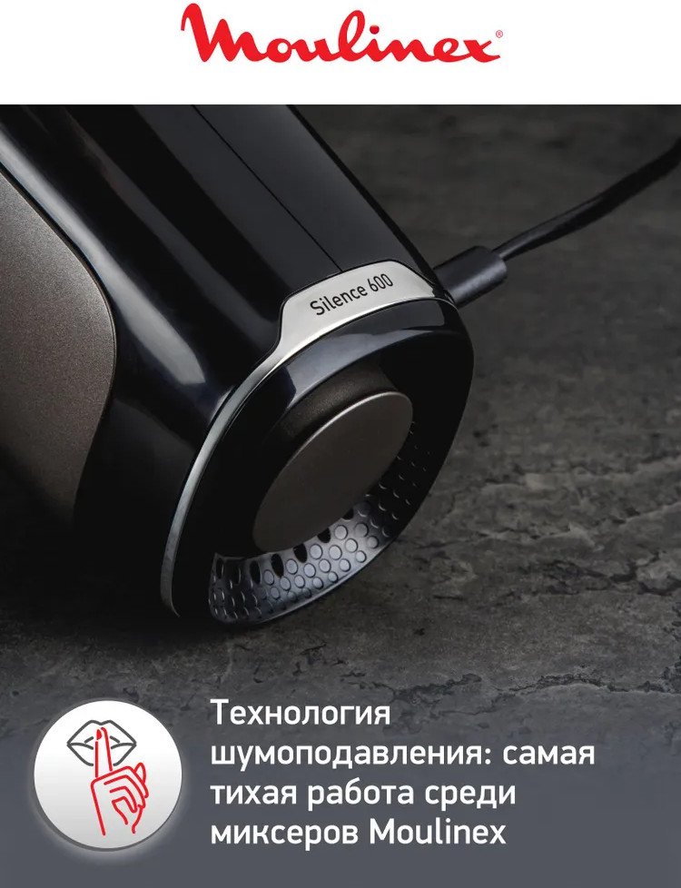Лучшее сочетание: миксер Moulinex Powermix Silence показывает безупречную производительность и низкий уровень шума, что делает его самым тихим и самым мощным ручным миксером от Moulinex. Благодаря мотору мощностью 600 Вт, технологии оптимизации воздушного потока и передовой технологии шумоподавления, миксер легко и эффективно справляется с самыми сложными рецептами. Откройте для себя полный набор: ручной миксер с множеством удобных функций, надежные венчики и крюки для теста из нержавеющей стали, погружной блендер с технологией Powelix и мини-измельчитель.