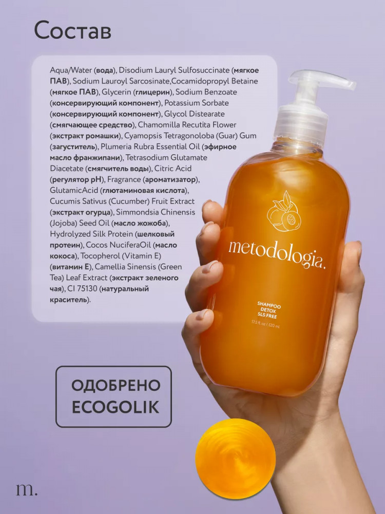 Metodologia Шампунь для волос бессульфатный увлажняющий «Detox»