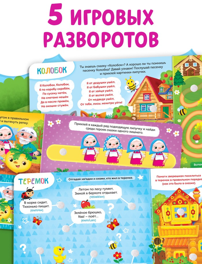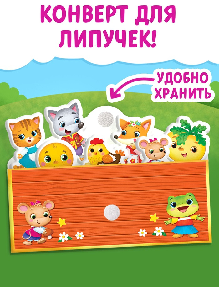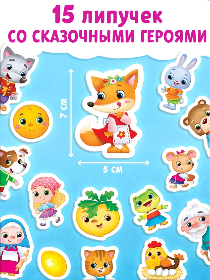 • мягкие липучки клеятся в книгу, а твёрдые — на героев из сказок;