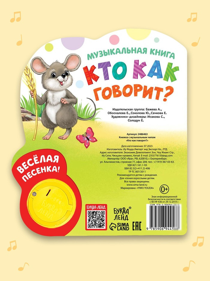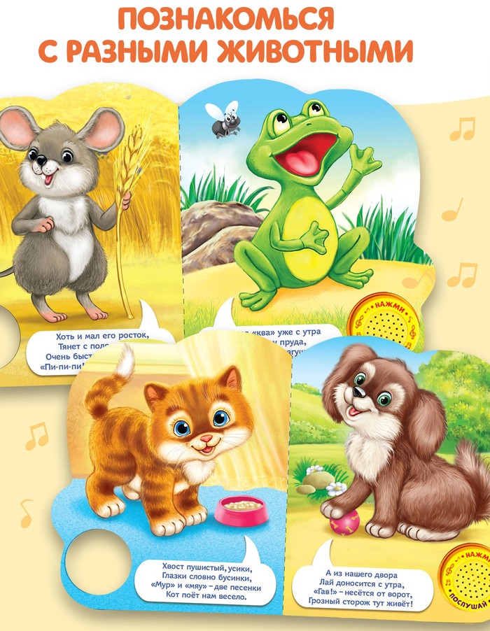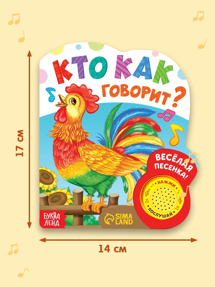 В данный момент этот товар отсутствует в продаже. Возможно, у нас найдется аналогичный или похожий товар здесь. Серия: Музыкальные книги Музыкальная книга «Кто как говорит» познакомит малыша с разными животными и звуками, которые они издают; на страничках издания ребёнка ждут забавные стишки и весёлая песенка.