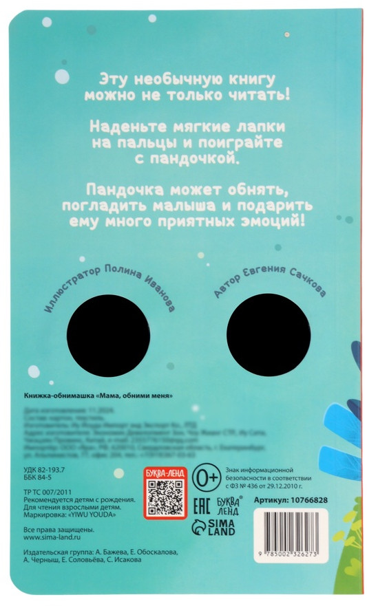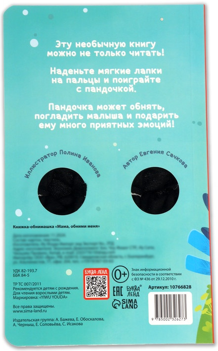 |  | Мама, обними меня. Детская книга-обнимашкаВ данный момент этот товар отсутствует в продаже. Возможно, у нас найдется аналогичный или похожий товар здесь .Серия: Бизи-книги для малышей Книга-обнимашка «Мама, обними меня» — это не просто история для малышей, а уникальный способ укрепить связь между родителем и ребёнком. Играя с персонажами книги, читая трогательные стихи о маминой заботе и показывая яркие картинки, взрослый сможет создать особенные моменты тепла и близости.