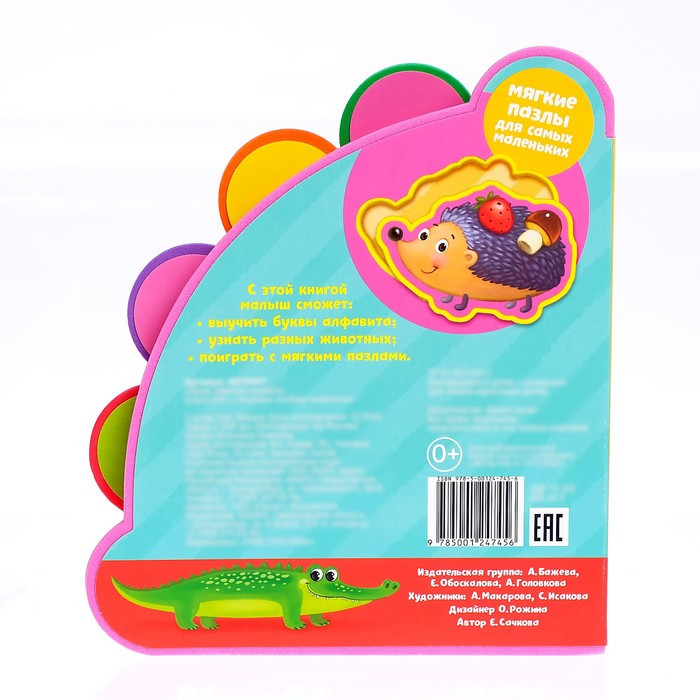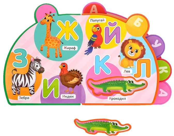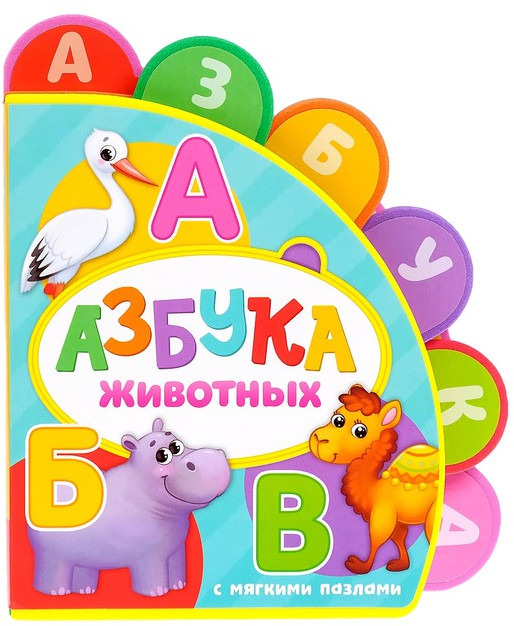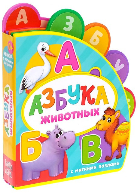 В данный момент этот товар отсутствует в продаже. Возможно, у нас найдется аналогичный или похожий товар здесь. Мягкая книга-пазл «Азбука животных» станет первым шагом малыша в мир букв и слов. Изготовленная из безопасного пористого материала EVA, она идеально подходит для детей с 1 года и помогает учить алфавит через яркие иллюстрации и интерактивные элементы.