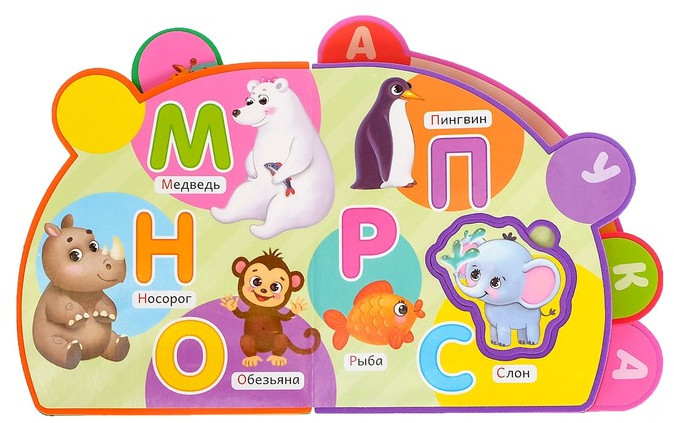 • каждая страница содержит буквы и милых животных, названия которых начинаются с представленной буквы, помогая запомнить алфавит;