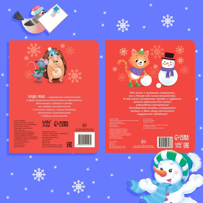Набор картонных книжек «Новогодние загадки» с окошками-секретами поможет скрасить дни в ожидании праздника. В них собраны увлекательные загадки и чудесные зимние картинки, создающие новогоднее настроение. На каждой страничке ребёнка ждёт загадка, а отгадка спрятана за картонным окошком, что превращает чтение в увлекательную игру. Компактный формат изданий, чуть больше А5, делает книги удобными для чтения дома, в гостях или в дороге. Такие задания помогают расширять кругозор малыша, развивают сообразительность, скорость реакции и умение мыслить самостоятельно. Книги рекомендованы для детей от 1 года.