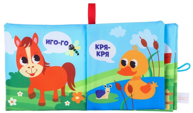 Книжка выполнена из мягкого текстиля с шуршащими вставками, которые делают игру увлекательной и стимулируют сенсорное развитие. Внутри — 8 простых и понятных картинок, подходящих для самых маленьких. Мягкий переплёт обеспечивает безопасность, а компактный размер позволяет брать книжку с собой в дорогу.