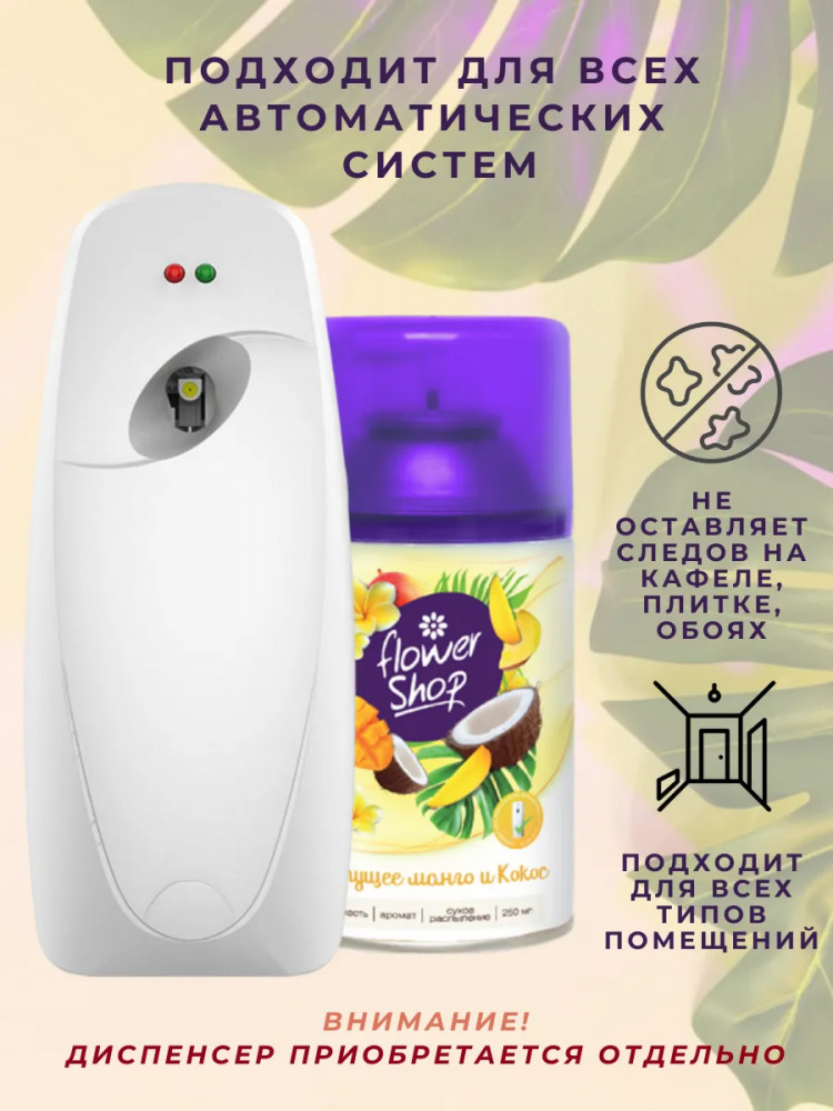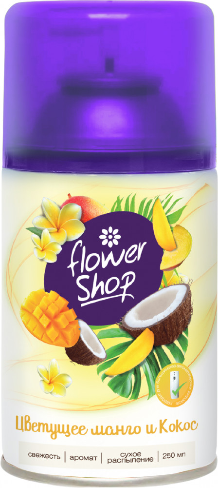 Flower Shop Сменный баллон для автоматического освежителя воздуха «Цветущее манго и кокос»