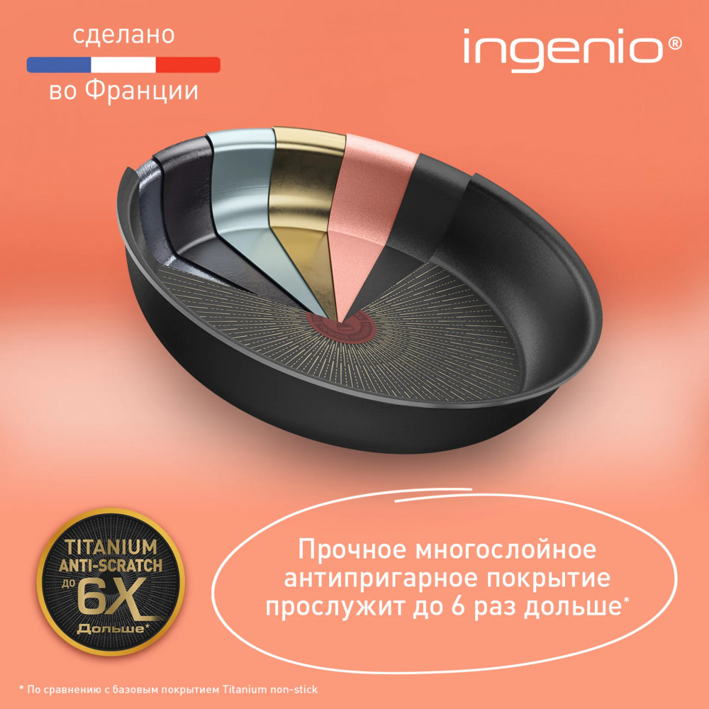 Tefal Набор посуды для приготовления с крышками и съемными ручками «Ingenio»новинка