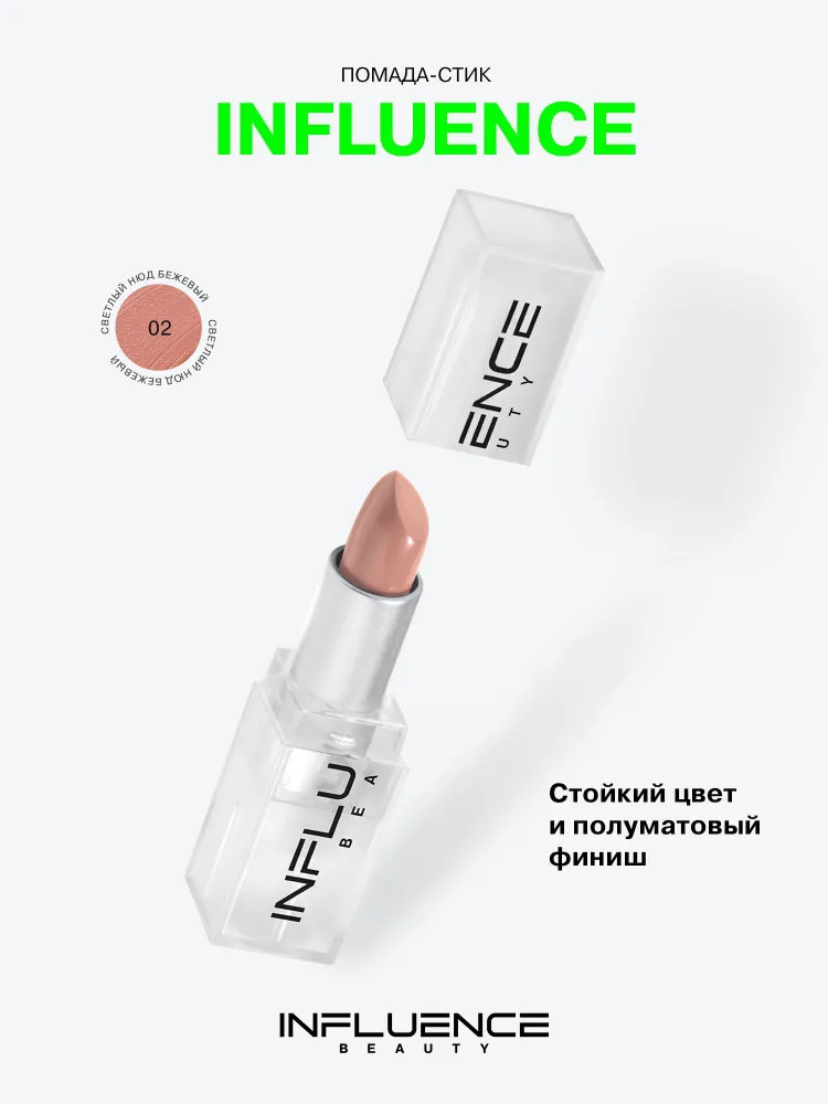 Influence Beauty Помада-стик для губ, тон 02 Светлый нюд бежевый