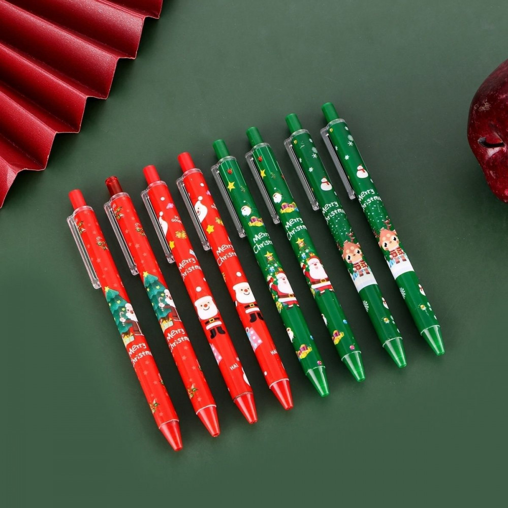 Ручка шариковая с новогодним дизайном — отличный рождественский подарок и праздничный аксессуар для офиса или школы. В наборе 16 штук: 8 ручек в зелёном и 8 в красном дизайне. Все ручки пишут чёрными чернилами, обеспечивая плавное и аккуратное письмо. |
