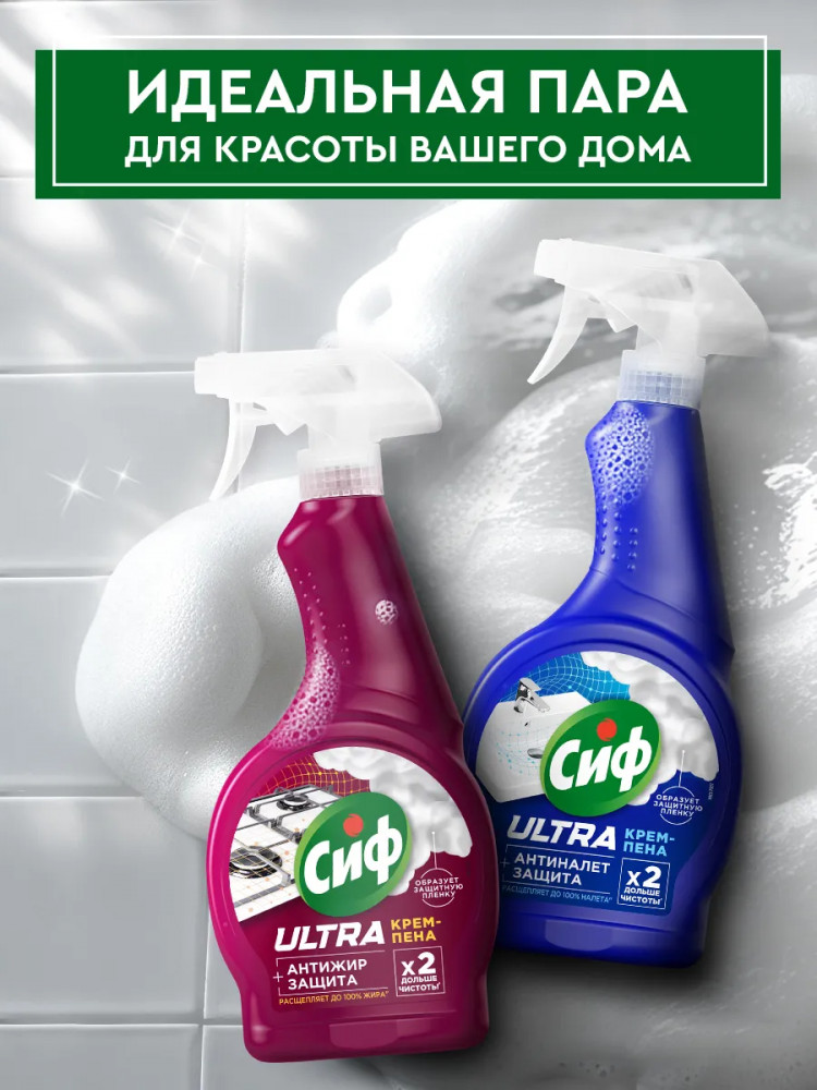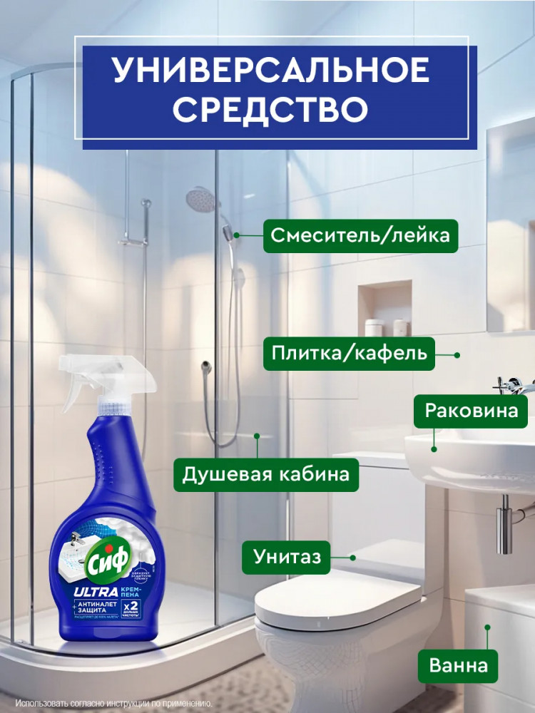 Средство для чистки сантехники, ванны и раковины содержит активные компоненты, которые эффективно расщепляют налет. Универсальное средство для уборки Антиналет — это на 100% эффективный и безопасный к поверхностям в ванной продукт. Средство от налета в ванной подходит для всех видов сантехники, включая хромированные поверхности и керамическую плитку. Крем-пена Сиф превратит ваш санузел в ухоженное, уютное место. Сиф — ваш дом красив!