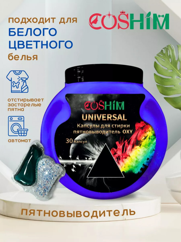 Концентрированные гипоаллергенные капсулы для стирки Coshim+кислородный пятновыводитель обеспечивают гигиеническую чистоту тканей, проникая глубоко в волокна ткани и расщепляя самые сложные загрязнения, препятствуют появлению катышков и ворсинок, а также устраняют неприятные запахи. Комбинация биоэнзимов и растительных ПАВ эффективно удаляет загрязнения и свежие пятна с волокон ткани даже в холодной воде. Функциональные добавки сохраняют насыщенность цвета, первоначальный вид, прочность и структуру ткани. Капсулы содержат гипоаллергенную отдушку с натуральными эфирными маслами лаванды и литсеи, которая придает белью свежий аромат бескрайнего океана. Инновационная оболочка капсул полностью растворится через 2-3 минуты после начала стирки благодаря чему идеально подходят для быстрой экспресс стирки. Подходят для стиральных машин и не применяется для ручной стирки.**не подходит для шёлка, шерсти.