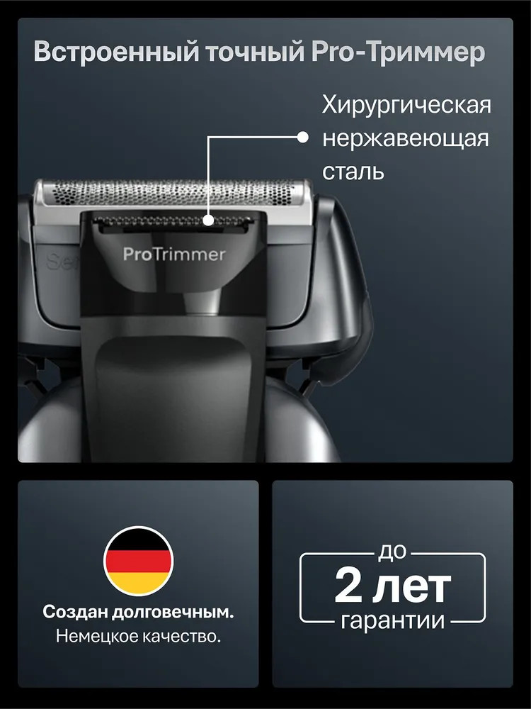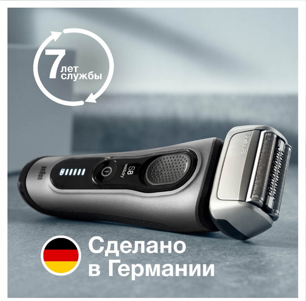 Поскольку Series 8 полностью водонепроницаема, её можно использовать с гелем и даже в душе, что подарит вам ощущение свежести. Мощный литий-ионный аккумулятор держит заряд на протяжении 60 минут использования и предусматривает ускоренную подзарядку за 5 минут.