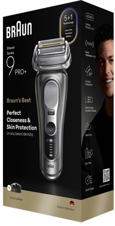 Идеальный результат без усилий с электробритвой Braun 9 Pro+ Серии 9615s — это наша самая лучшая инновационная бритва, которая дарит комфорт и удовольствие от бритья ежедневно, годами. Braun 9 Pro+ имеет 5 идеально синхронных бреющих элементов с защитой кожи, 40000 режущих движений/сек и 40° плавающую головку для идеального результата на любой щетине — 1, 3 или 7-дневной.