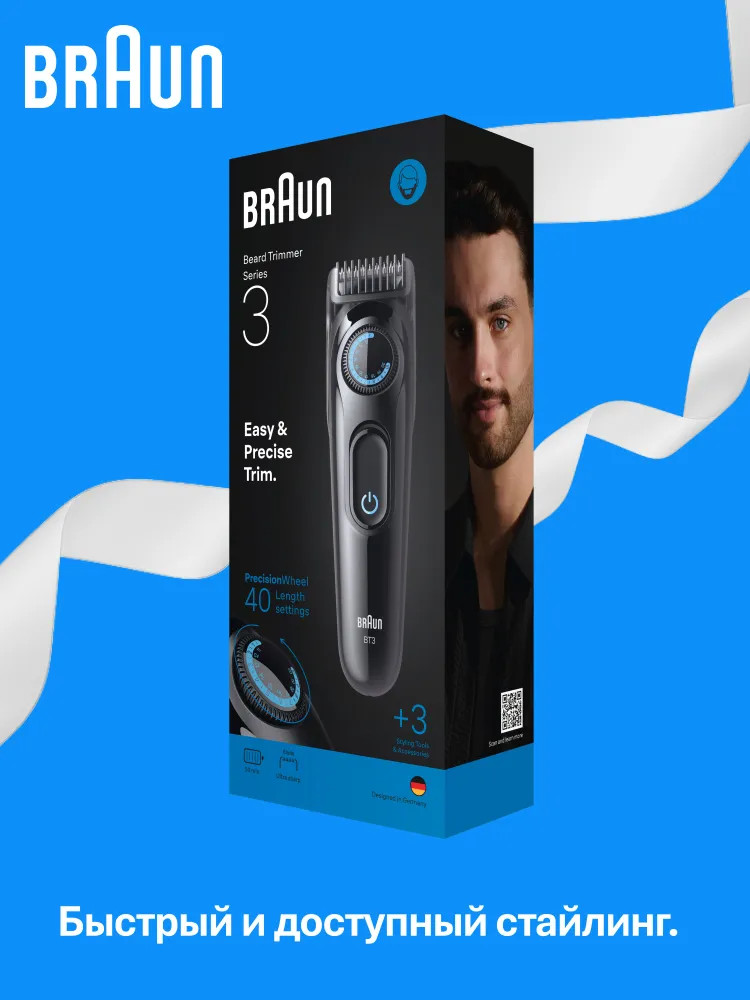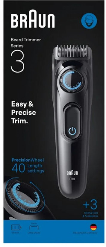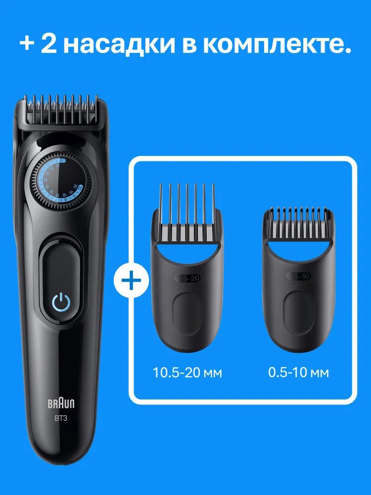 Триммер для бороды от Braun BT3000 обеспечивает точную длину, четкие контуры и подравнивание. Если вы хотите добиться стильной щетины, сохранить длину бороды или подровнять контуры, съемная насадка-гребень для подравнивания обеспечивает 20 настроек длины от 1 до 10 мм. Предоставляют идеальную точность для создания любого стиля. Крайне острые лезвия из нержавеющей стали срезают длинные или густые волосы без выдергивания. 40 минут точной стрижки после 10 часовой зарядки .