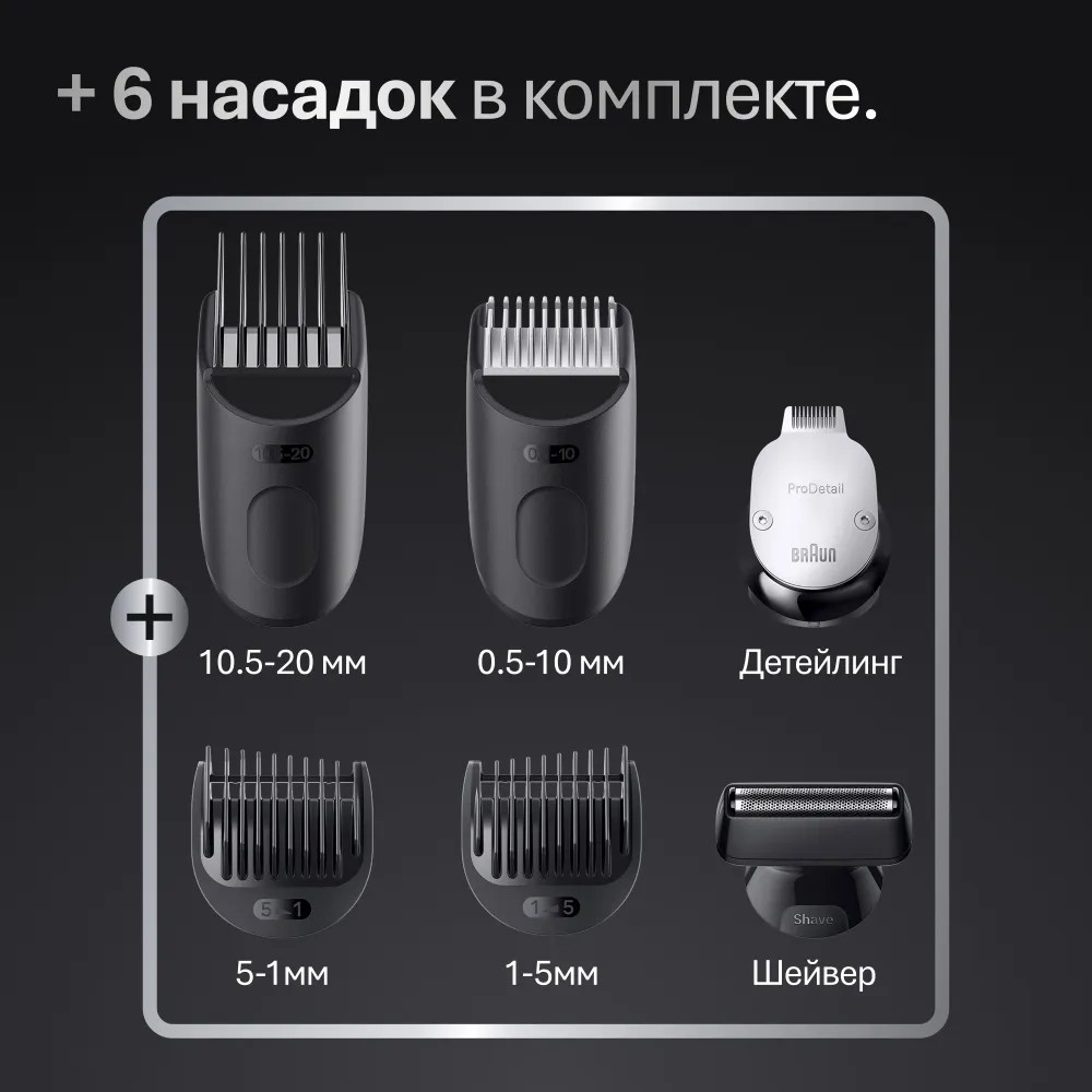 Создавайте бороду любой длины в интервале 0.5-21 мм с 4 гребнями, дополнив ее аккуратными и точными линиями на шее и щеках основным триммером. Обрабатывайте небольшие зоны, используя насадку для точного стайлинга. Снимите гребень, чтобы использовать металлические лезвия для создания точных линий и контуров. Для небольших зон вы можете использовать насадку для точного стайлинга.