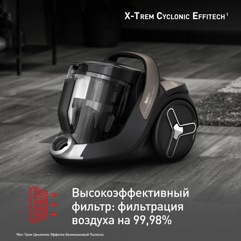 Откройте для себя Extreme Cyclonic Effitech — пылесос с высокоэффективным мотором Effitech, который обеспечивает ту же производительность, что и модели мощностью 2100 Вт, и экономию до 80% энергии в процессе работы. Невероятно тихий пылесос Extreme Cyclonic Effitech гарантирует качественную очистку любых типов поверхностей при комфортном уровне шума всего 66 дБ (А). Вместительный контейнер прибора позволяет проводить более длительные сеансы уборки без необходимости часто освобождать его от мусора и пыли. Высокоэффективный мотор Effitech обеспечивает ту же производительность, что и модели мощностью 2100 Вт, экономя до 80% энергии в процессе уборки. Тихий пылесос для более комфортной уборки, всего 66 дБ (А) — уровень шума не громче, чем при повседневном разговоре. Вместительный контейнер для сбора пыли имеет объем 2,5 л и не требует частого очищения — идеально для длительных сеансов уборки.