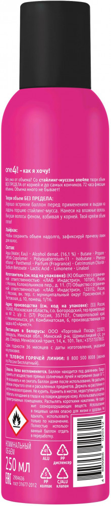 One4Me Мусс для волос «Без предела. Крейзи-объем»