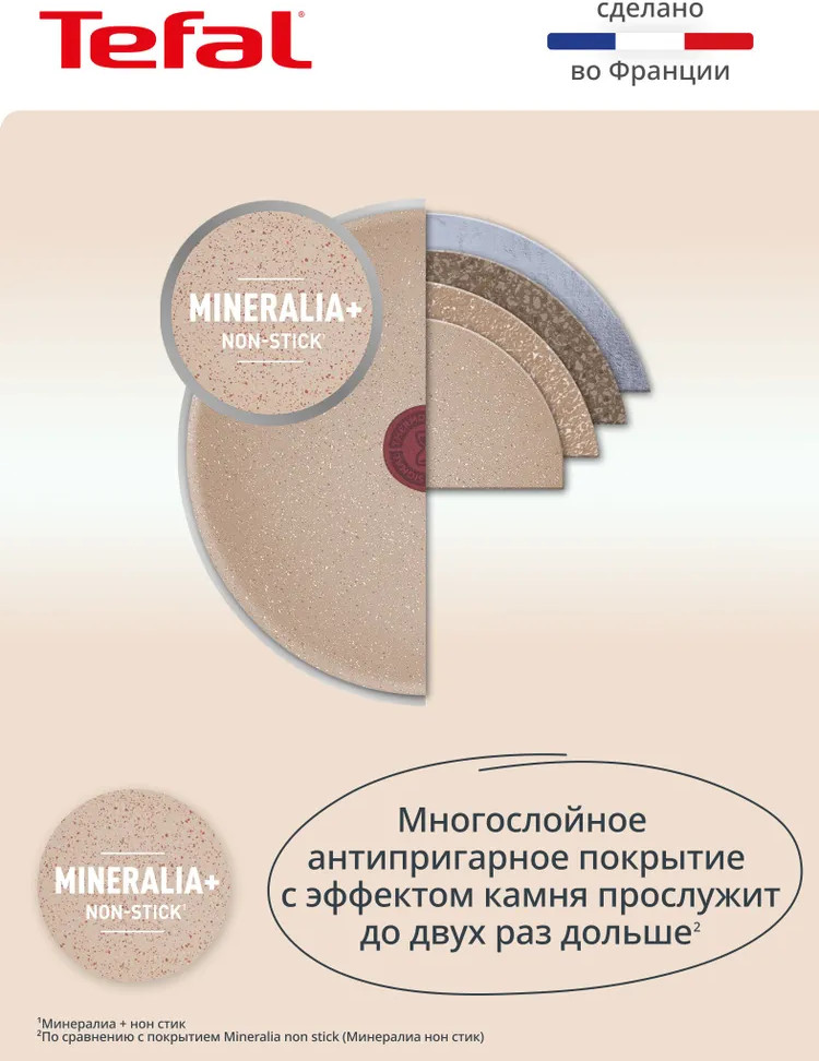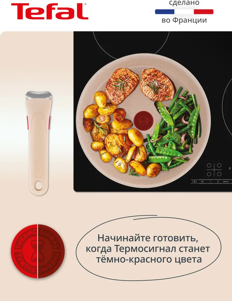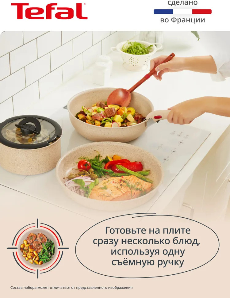 Антипригарное покрытие Minerallia+ и отсутствие PFOA делают кастрюли и сковороды безопасными и долговечными. Этот набор позволяет вам готовить с комфортом, как настоящий шеф, с применением современных технологий, таких как Advanced Induction Technology, которая обеспечивает эффективное распределение тепла по стенкам посуды для кухни. Кухонный набор для приготовления выполнен в стильном бежевом глиняном цвете с отделкой «Лунный свет» и оснащен съемной ручкой для удобства хранения и использования. Каждое изделие из набора имеет край для легкого слива, что добавляет дополнительное удобство при готовке. А удобный размер и практичность делают набор Тефаль отличным выбором для приготовления различных блюд, от простых до более сложных.
