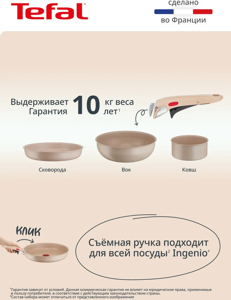 Произведенный во Франции, этот набор сочетает высокое качество и современные технологии, делая каждый процесс приготовления пищи приятным и легким. Готовьте с удовольствием и уверенностью, как настоящий шеф вместе с металлическим набором посуды со съемной ручкой Ingenio Delight Cookware Set от Tefal!