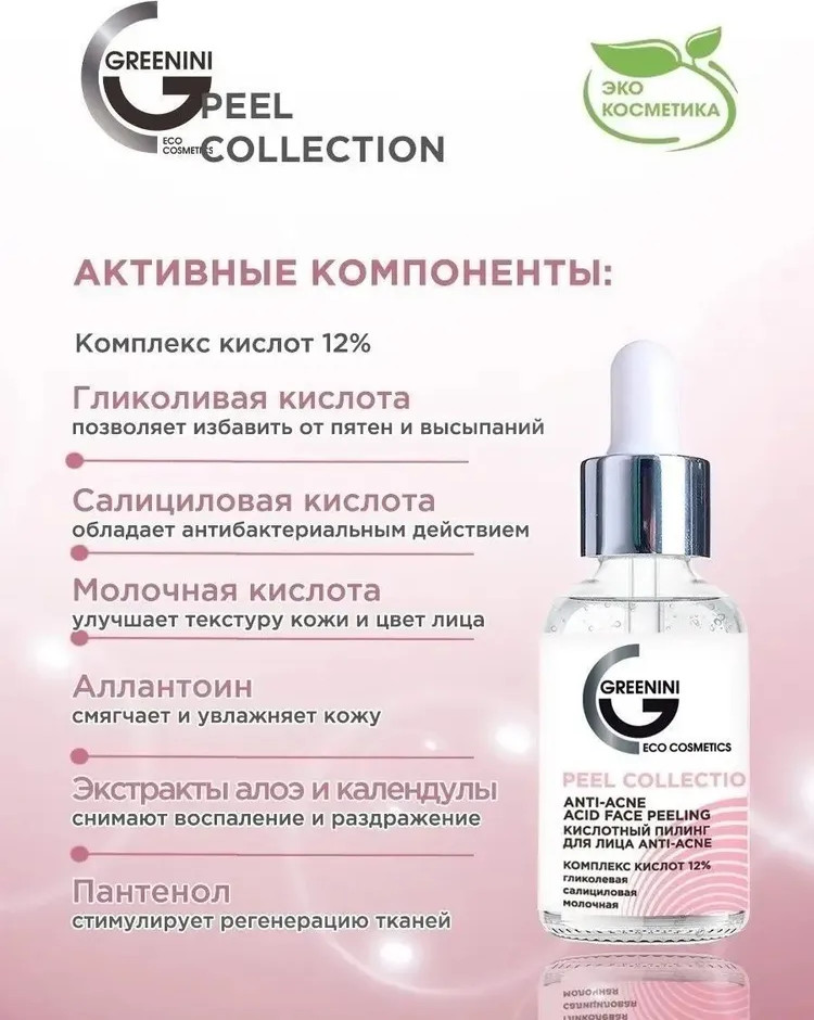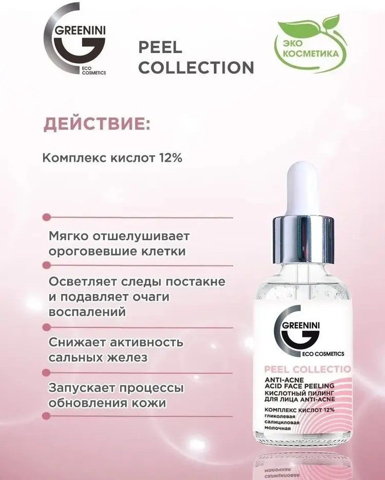 Greenini Пилинг для лица кислотный против акне 12% «Anti-Aсne»