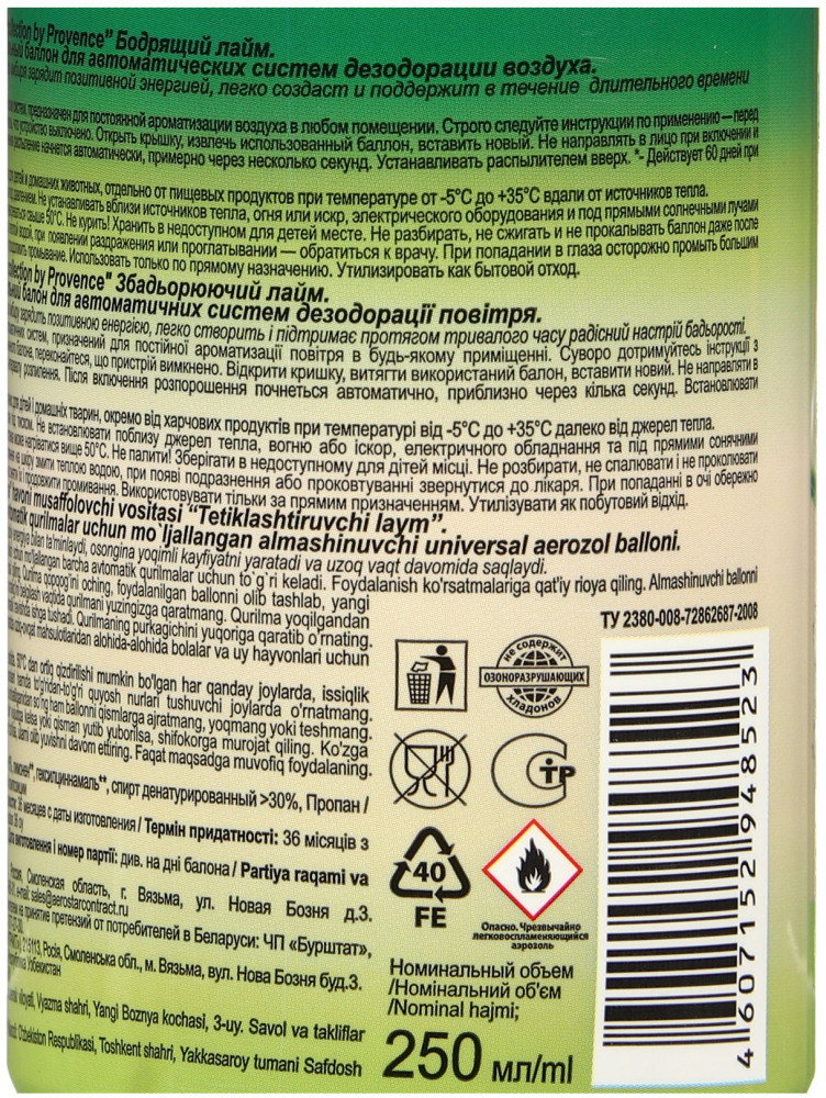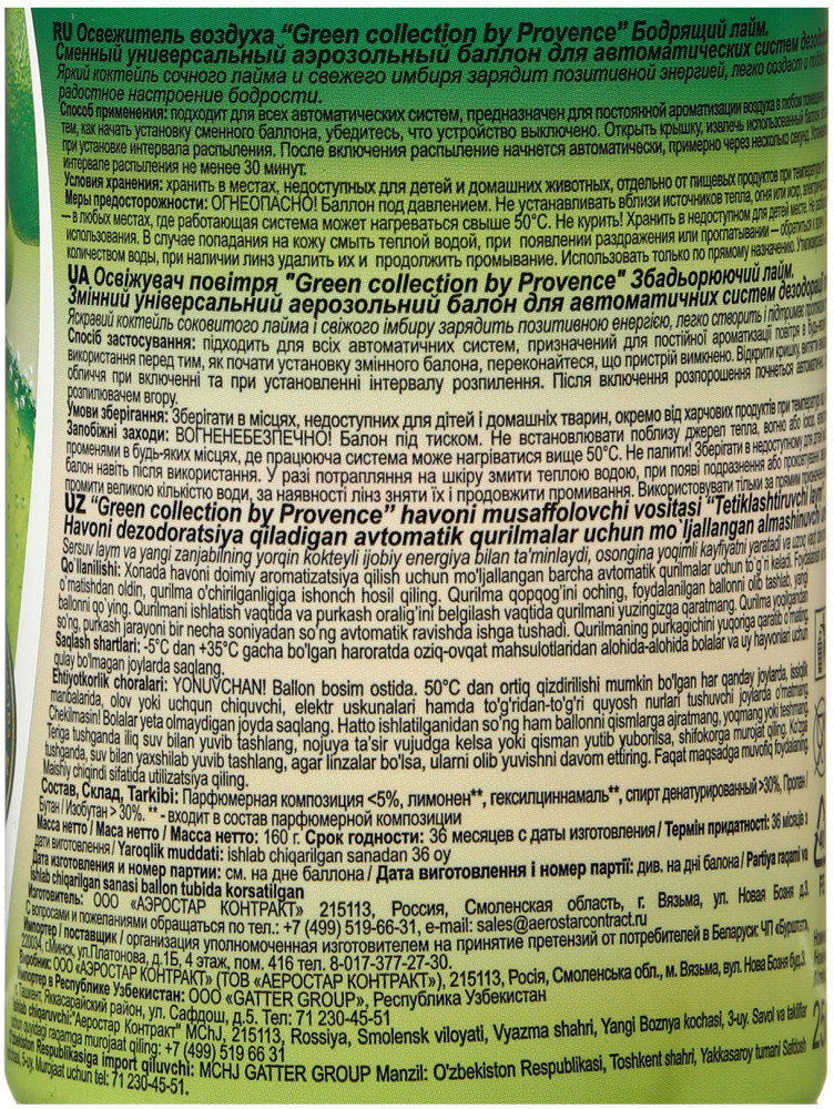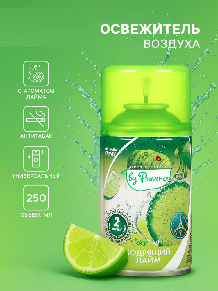 Баллон сменный для автоматических систем дезодорации воздуха «Бодрящий лайм» | Green Collection | by Provence