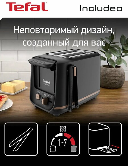 Серия: Includeo Линейка Tefal Includeo разработана нашими дизайнерами совместно с покупателями, благодаря чему она удовлетворит потребности каждого. Эргономичный тостер оснащен легкими в использовании функциями: 2 широких загрузочных отверстия, хорошо видимые и интуитивно понятные элементы управления, силиконовые щипцы, высокий подъем тостов для безопасного извлечения даже самых маленьких ломтиков хлеба. Благодаря 7 степеням поджаривания, этот тостер идеально подходит для ежедневного использования. |