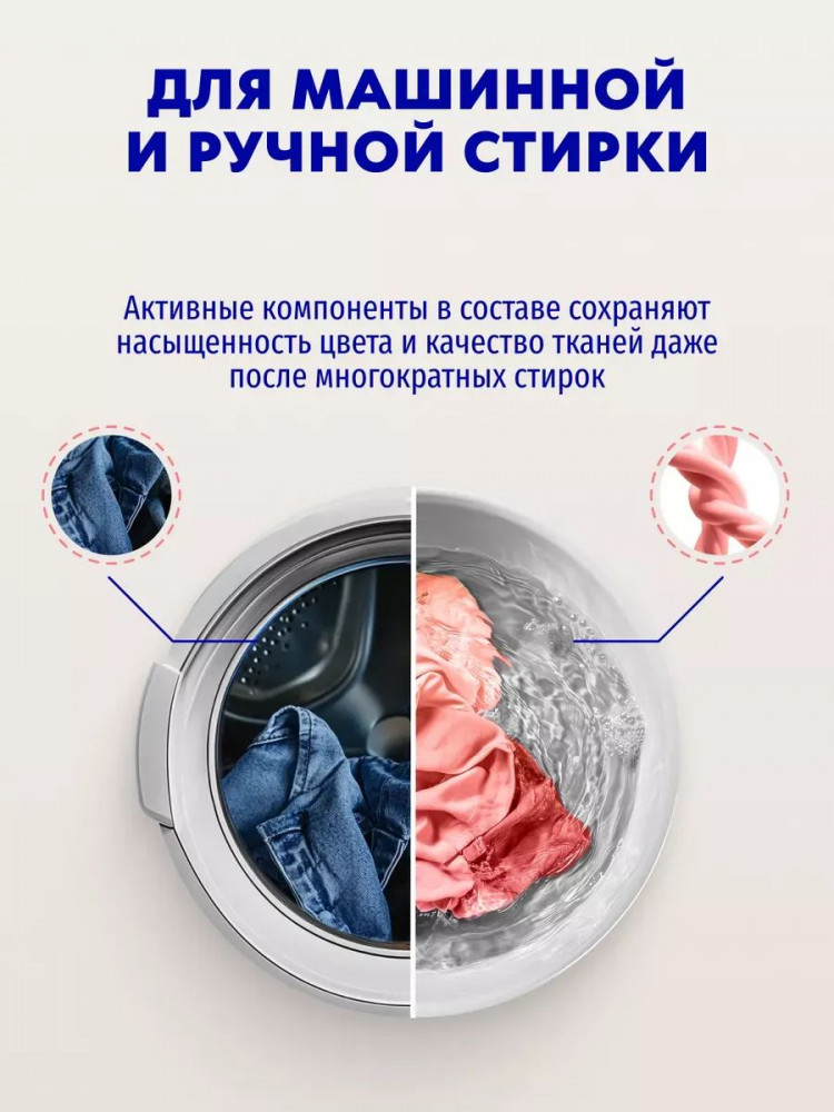 Способ применения: при стирке добавить 30 мл средства на 5 кг белья. Перед использованием рекомендуется взбалтывать. Не наносите средство непосредственно на ткань во избежание изменения её цвета.
