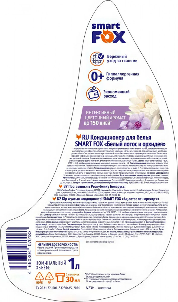 Smart Fox Кондиционер для белья «Белый лотос и орхидея»