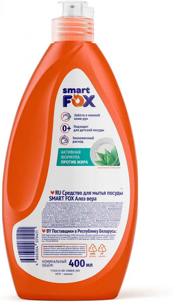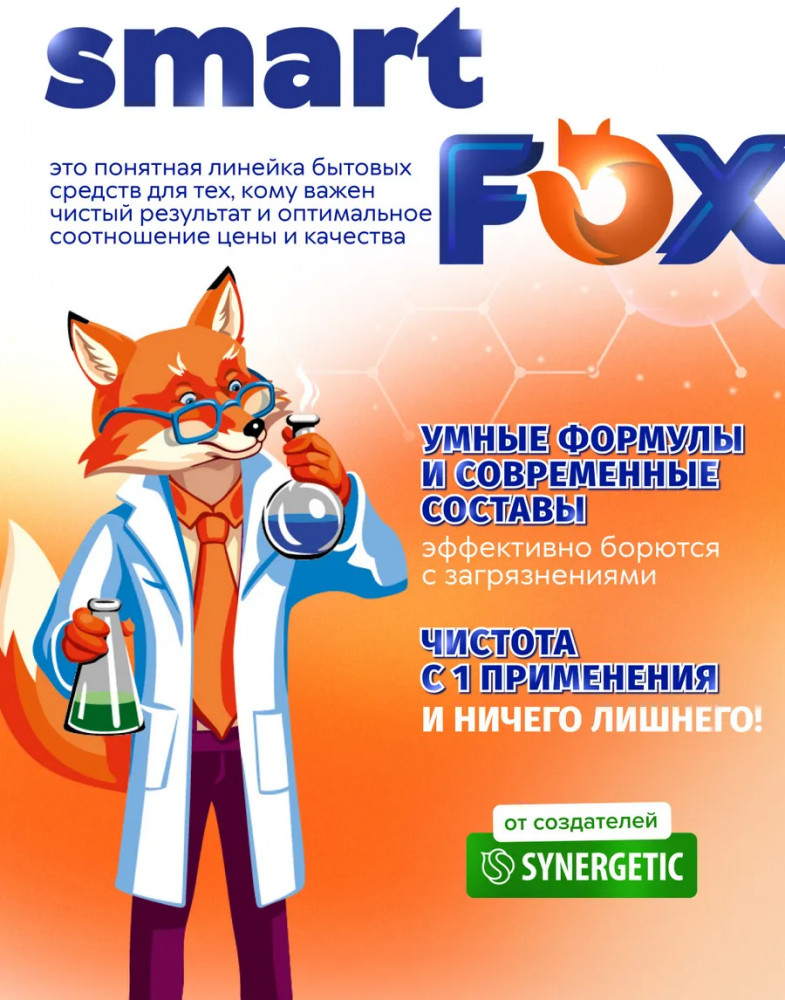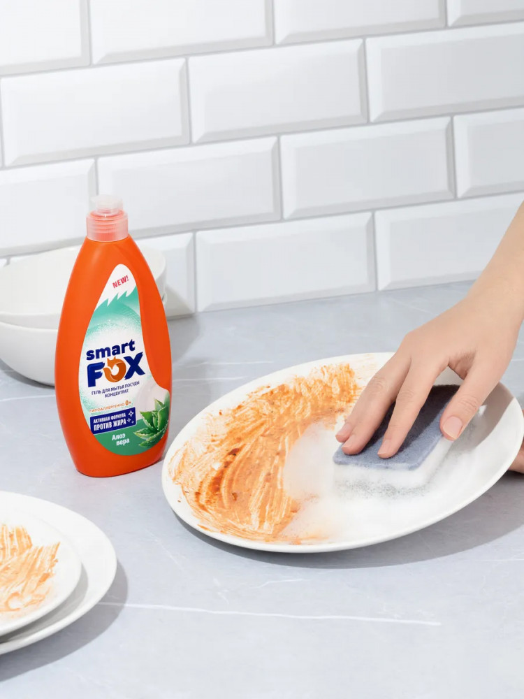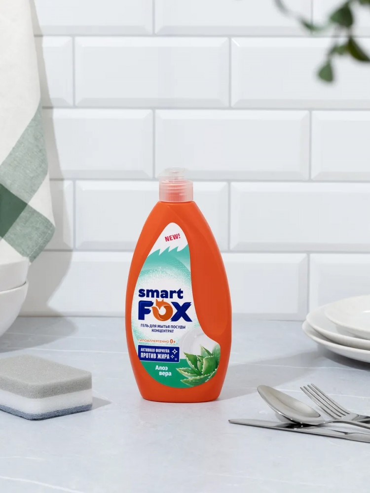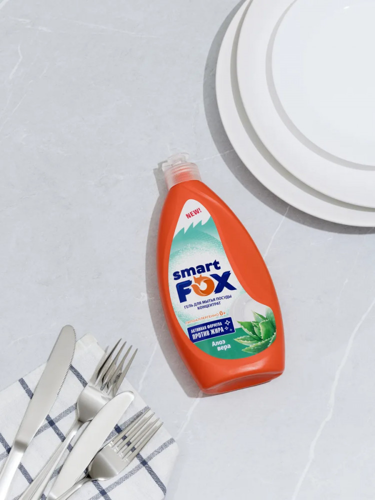 Концентрированный гель для посуды Smart Fox — надёжный помощник для безупречной чистоты и комфорта на кухне каждый день. Благодаря активной формуле гель быстро расщепляет жир и въевшиеся загрязнения, очищает посуду даже в холодной воде, эффективно нейтрализует неприятные запахи. Средство идеально подходит для всех видов посуды, в том числе детской 0+, и безопасно для кухонных поверхностей и предметов. Гель легко смывается водой, не оставляя на посуде разводов и придавая ей зеркальный блеск и сияние. Концентрированная формула обеспечивает экономичный расход как при мытье посуды, так и при приготовлении раствора (5 мл на 5 литров воды) для очищения поверхностей. Мягкие активные компоненты в составе не сушат кожу рук, сохраняя её мягкость и нежность. Гипоаллергенная парфюмерная композиция придаёт средству аромат природной свежести и чистоты. Smart Fox — чистота и комфорт на кухне каждый день.