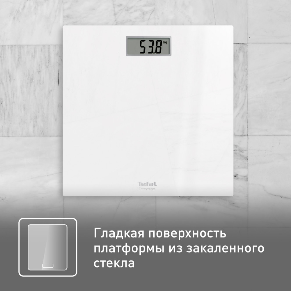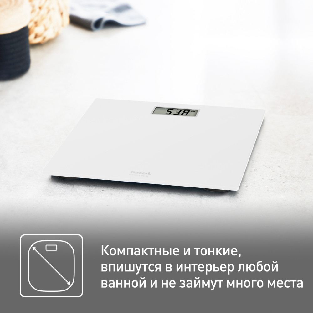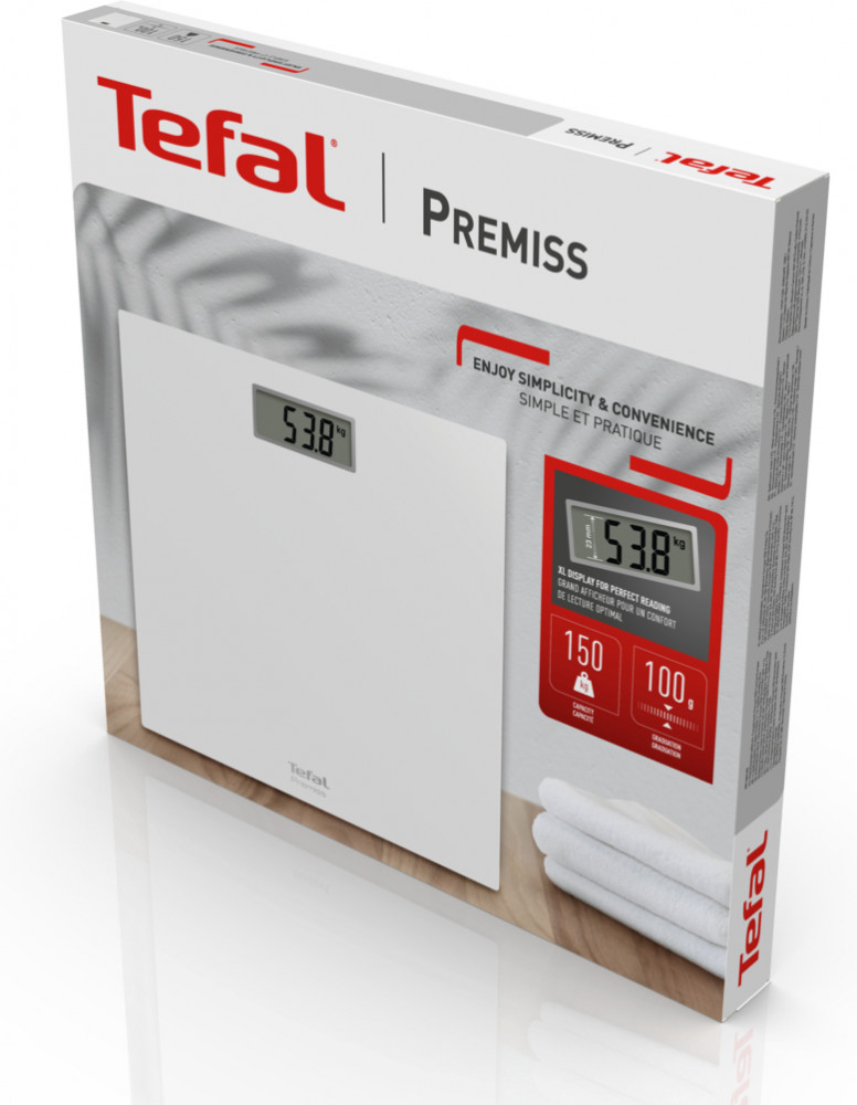 С простыми и удобными напольными весами Premiss от Tefal взвешиваться каждый день или время от времени — легко! Тонкая и широкая платформа весов выполнена из закаленного стекла и выдерживает вес до 150 кг, имеет большой цифровой дисплей и функцию автоматического включения и выключения. Весы имеют широкую платформу 30×30 см и большой дисплей с хорошо читаемыми цифрами. Благодаря ультратонкой платформе высотой всего 22 мм весы выглядят элегантно, и их удобно хранить.