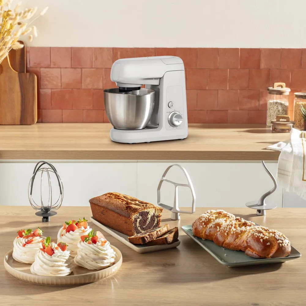 Серия: Bake Partner Технология EVER baking² автоматически определяет консистенцию теста и адаптирует мощность и скорость смешивания для оптимального результата приготовления и более длительной работы устройства. Эксклюзивные насадки BakeGood³ — венчик Flex Whisk⁴ для идеального взбивания воздушного крема и густой пены из яичных белков (даже из одного яйца), насадка для смешивания теста и крюк для замешивания густого теста. |