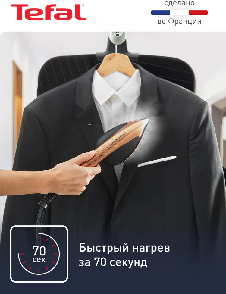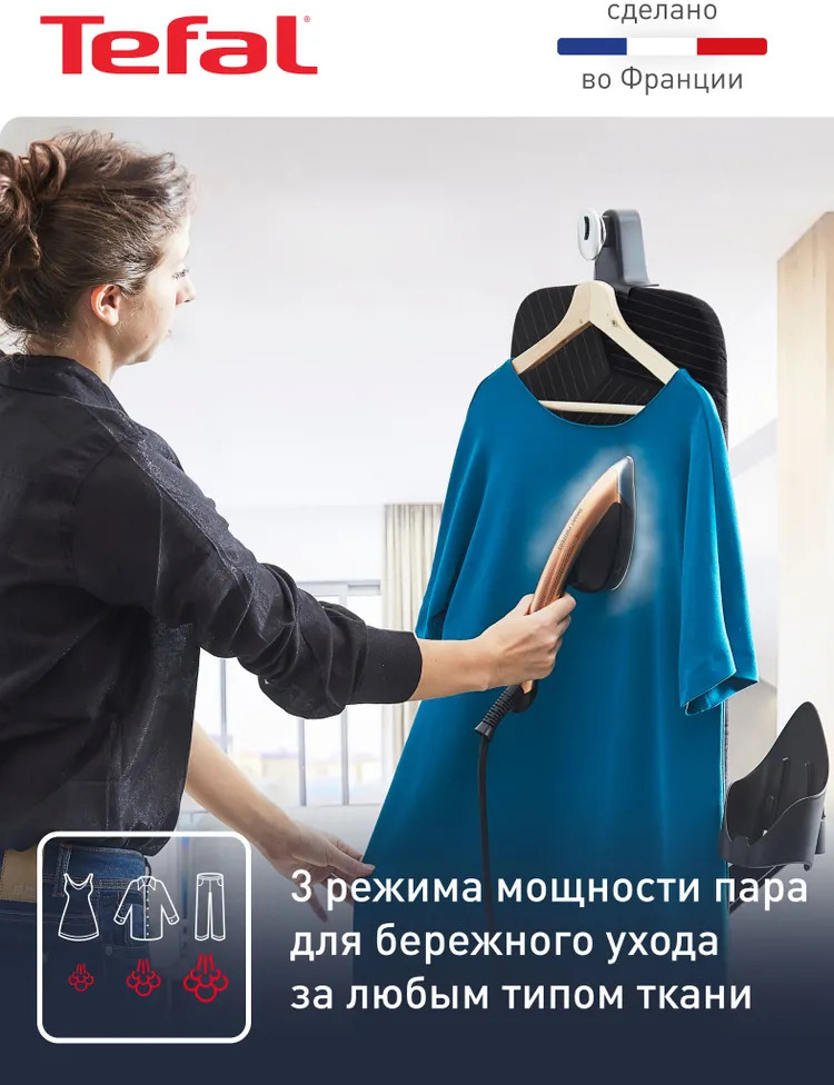 Усовершенствованная система ухода за тканями создает комбинацию мощного пара и безопасной температуры для всех типов ткани, даже таких деликатных, как шелк, без дополнительных настроек и риска прожечь ткань. Ваша универсальная паровая гладильная система «Все в одном» готова к работе за считаные секунды, чтобы вы могли привести одежду в порядок даже тогда, когда времени совсем мало.