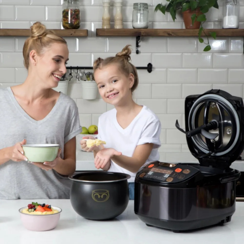 Лопатка для перемешивания (с возможным отключением) полностью автоматизирует процесс приготовления. Мультиварка готовит кашу, плов, рагу, варенье и многое другое! Благодаря своей уникальной сферической форме чаша обеспечивает постоянную циркуляцию горячего воздуха и равномерное приготовление блюда. Также равномерному нагреву способствует толщина стенок — 2мм. |