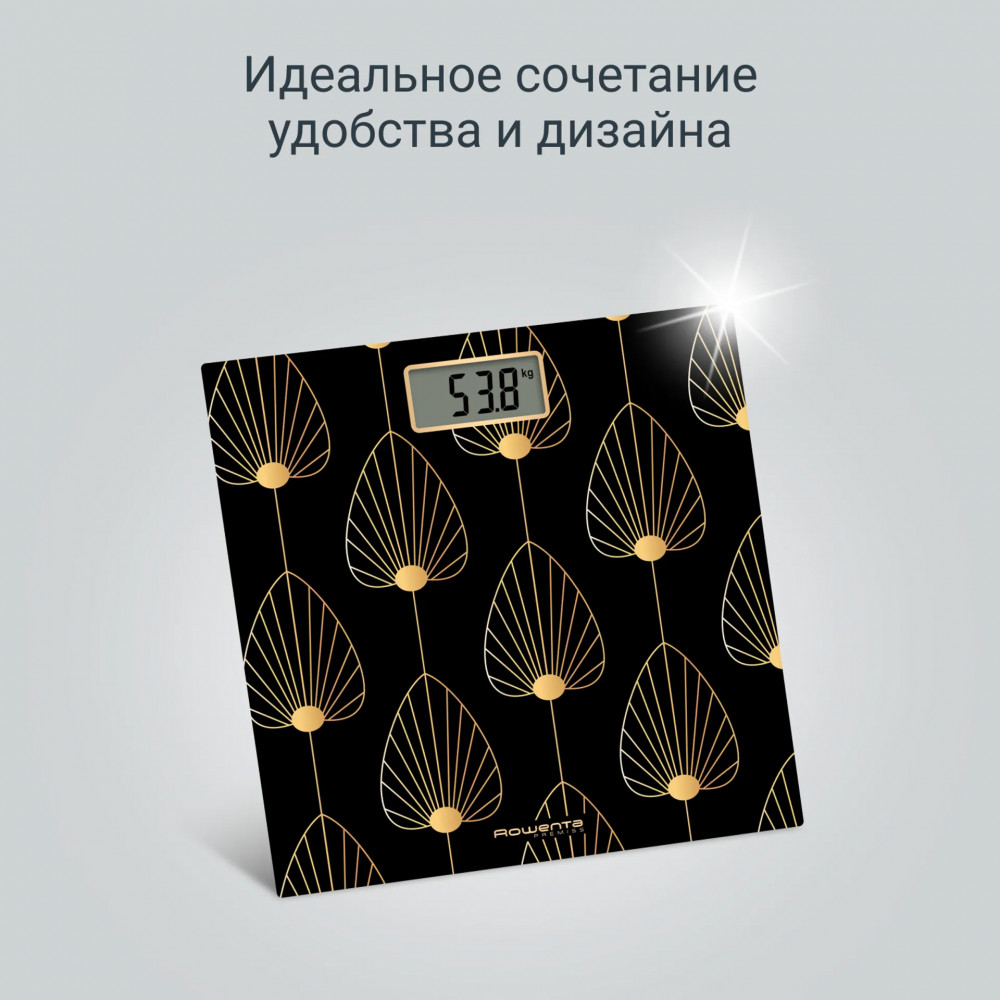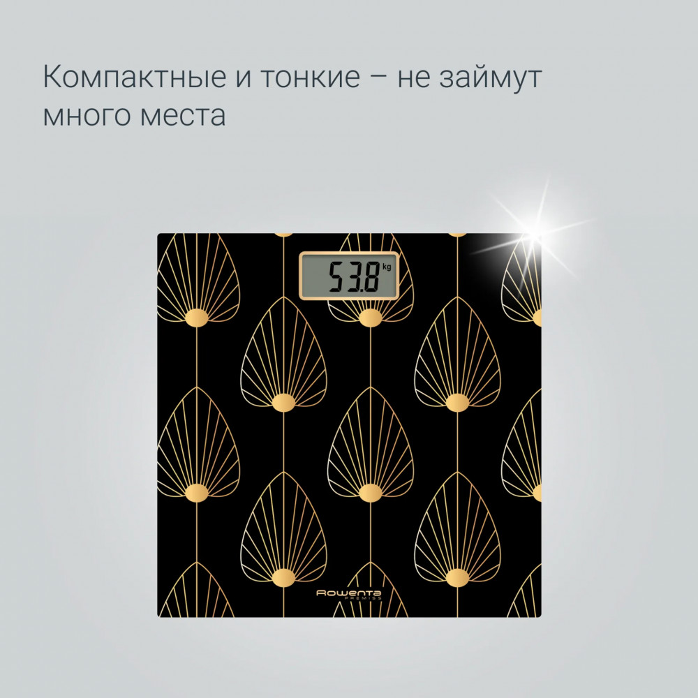 Умные по функционалу и простые в использовании, цифровые весы Rowenta Premiss станут отличным помощником для точного контроля массы тела. Большая платформа из закаленного стекла, наглядный LCD-дисплей, высокий предел взвешивания 150 кг с шагом 100 г и выбор между имперскими и метрическими единицами измерения делают весы по-настоящему универсальными. Измерить своей вес можно сразу после покупки — вставьте входящую в комплект батарейку и встаньте на платформу: автовключение сделает все остальное.
