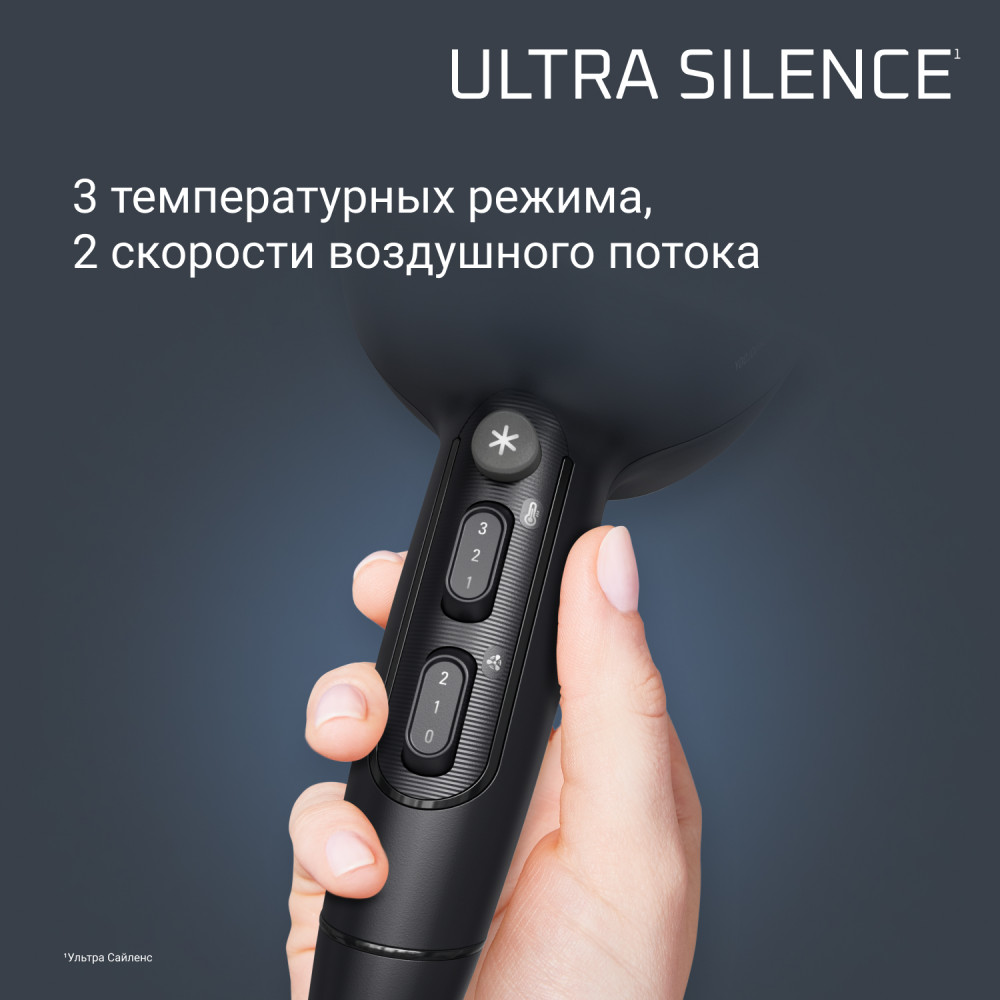 Ultra Silence — невероятно тихий фен от Rowenta. Откройте для себя самый тихий фен с уровнем шума в 2 раза ниже — 66,5 дБ(А), немного громче повседневного разговора. Высокая эффективность сушки благодаря мотору мощностью 2100 Вт и скорости воздушного потока в 115 км/ч, которая на 20% выше привычного. Ионизация нейтрализует статическое электричество, делая волосы мягкими, послушными и в 2 раза более блестящими. Стильный и компактный дизайн корпуса, который на 30% легче⁶ — сушка и укладка ещё не были настолько удобными. Концентратор и диффузор обеспечивают широкий спектр укладок под любой стиль и настроение. Обдув холодным воздухом позволяет надёжно зафиксировать укладку, сохраняя её форму в течение всего дня. Шесть настроек скорости и температуры обеспечивают тонкую настройку потока воздуха в соответствии с вашим типом волос. |