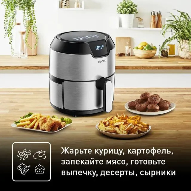 Аэрогриль Tefal Easy Fry Deluxe позволит каждый день наслаждаться вкусными, хрустящими блюдами, приготовленными практически без использования масла. Вы сможете жарить курицу, картофель, запекать мясо, готовить выпечку, десерты, сырники и многое другое. Готовьте с хрустящей корочкой без масла благодаря оптимальному распределению потоков горячего воздуха.