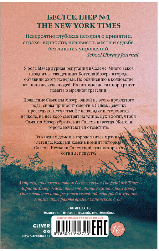 Серия: #trendbooks thriller Роман «Как повесить ведьму» переносит нас в Салем — столицу колдовства и черной магии, которая окутана тайнами прошлого по сей день. У рода Мэзеров дурная репутация в Салеме. Много веков назад из-за священника Коттона Мэзера в городе объявили охоту на ведьм. По обвинению в колдовстве казнили десятки людей. Их потомки до сих пор хранят память о мрачной трагедии. Появление Саманты Мэзер, одной из проклятого рода, снова приносит смерти в Салем. Девушку преследуют несчастья. Ее ненавидят и сторонятся в школе, на нее косо смотрят на улице. Духи хотят, чтобы Саманта Мэзер убралась из Салема навсегда. Жители города мечтают ей отомстить. За каждым домом в городе таится мрачная легенда. Каждый камень помнит историю Салема. Неужели Салемский суд повторится сотни лет спустя? |