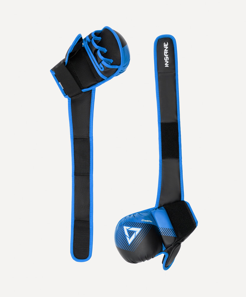 Перчатки Insane Hybrid — специализированные гибридные перчатки для ММА. Их конструкция разработана с учетом особенностей данного вида спорта: она позволяет бойцу оставаться под надежной защитой и применять как ударные, так и борцовские техники. Перчатки имеют круглую изогнутую форму, которая естественным образом полностью повторяет форму суставов пальцев и кулака, снижая утомляемость и риск получения травм. Hybrid комфортно и плотно облегают руку, а открытая ладонь позволяет проводить захваты, броски и другие приемы как в стойке, так и в партере. Подушка средней жесткости с наполнителем из многослойной плотной пены отлично поглощает удары и минимизирует их вредное воздействие на суставы. Толщина наполнителя позволяет отрабатывать удары на снарядах. Тыльная сторона ладони и отделение для большого пальца имеют дополнительную защиту, которая не сковывает движений. За надежную фиксацию на руке отвечает длинная манжета на липучке — полтора оборота вокруг запястья. Перчатки Insane Hybrid комфортны и долговечны в использовании. Прочная подкладка быстро сохнет и хорошо отводит влагу, надежная прошивка дополнительно увеличивает срок службы изделия.