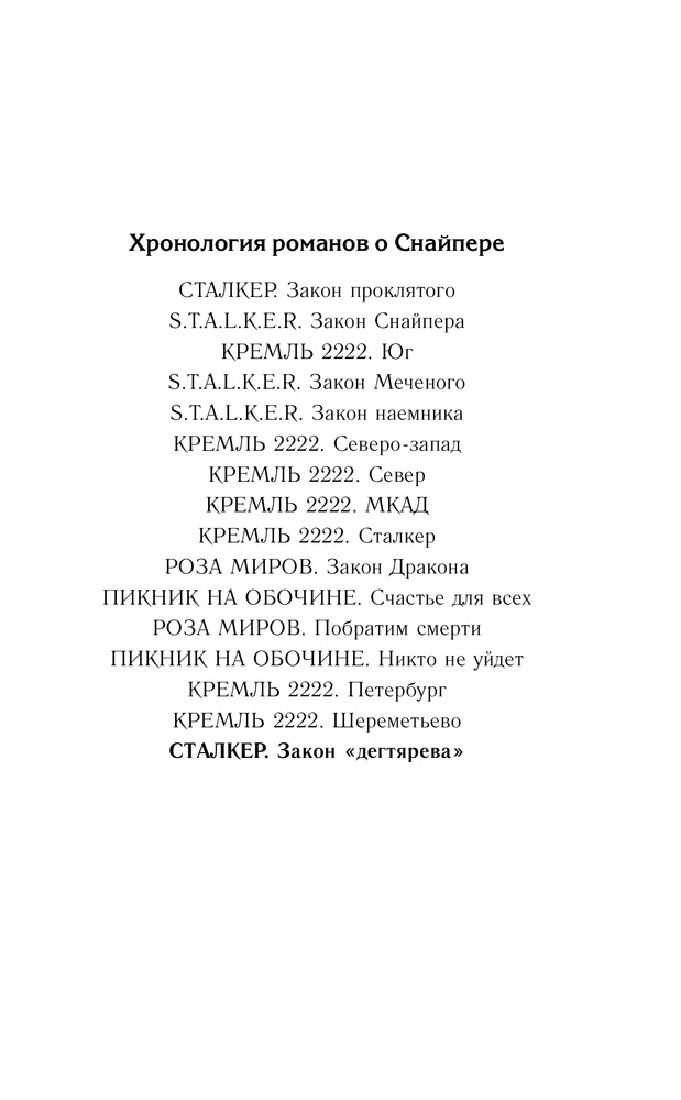 💳 Оплатить за товар можно при получении 🇰🇿 Есть бесплатная доставка по Казахстану 🎁 Копите бонусы с каждой покупки Серия: Сталкер Снайпер шел в Кремль, надеясь на то, что его все еще ждет там девушка с глазами цвета чистого неба. |