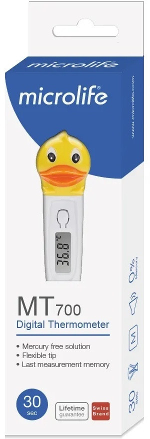 Детский термометр Microlife MT 700 — идеальный выбор для заботливых родителей. Его яркий и забавный дизайн в виде утёнка превращает процесс измерения температуры в игру, помогая малышу чувствовать себя спокойно и комфортно. Термометр обеспечивает быстрое и точное измерение всего за 30 секунд, не содержит ртути и стекла, оснащён гибким наконечником и удобным информативным дисплеем. Простое управление одной кнопкой, память последнего измерения, автоматическая диагностика, звуковые сигналы при включении и завершении измерения, а также функция автоматического отключения делают использование максимально безопасным и удобным. |