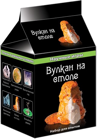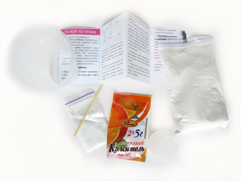 Набор разочаровал. Весь эксперимент сводится в основном к изготовлению макета вулкана из бумаги и алебастра. А сам опыт - это гашение соды уксусом. Пакетики не подписаны, перечня компонентов набора нет, входит в него далеко не все, что необходимо. Ребёнок не в восторге.