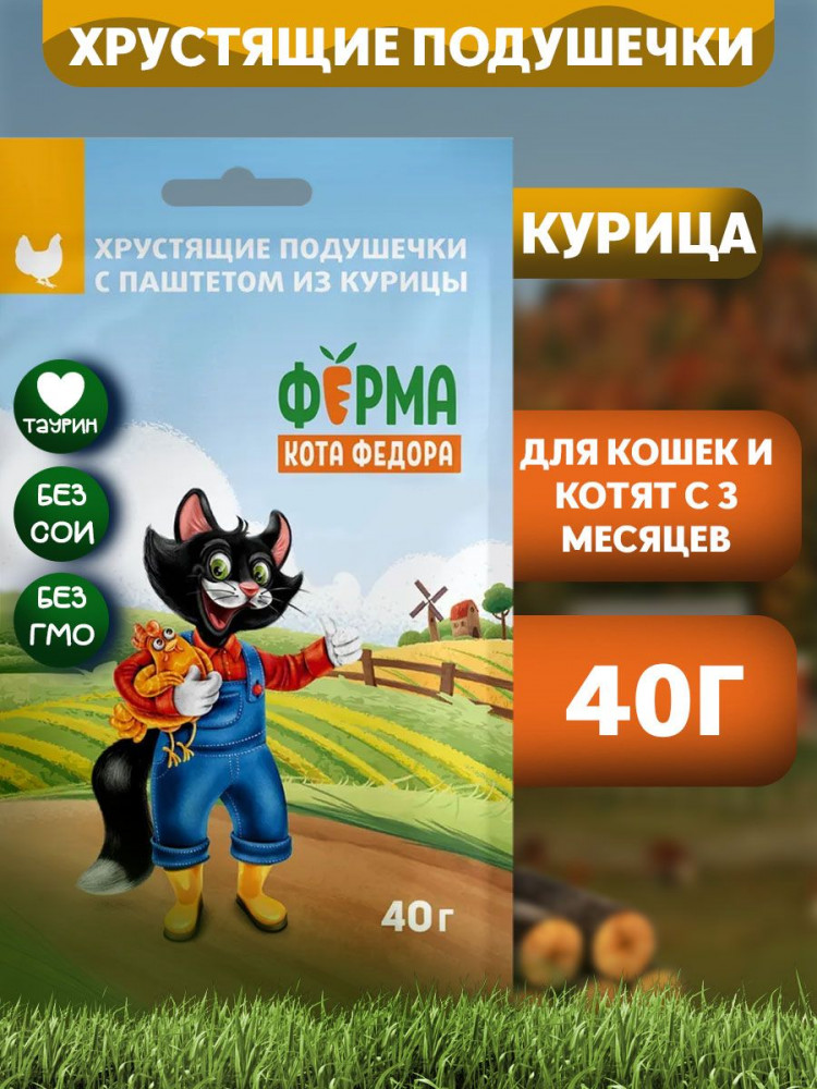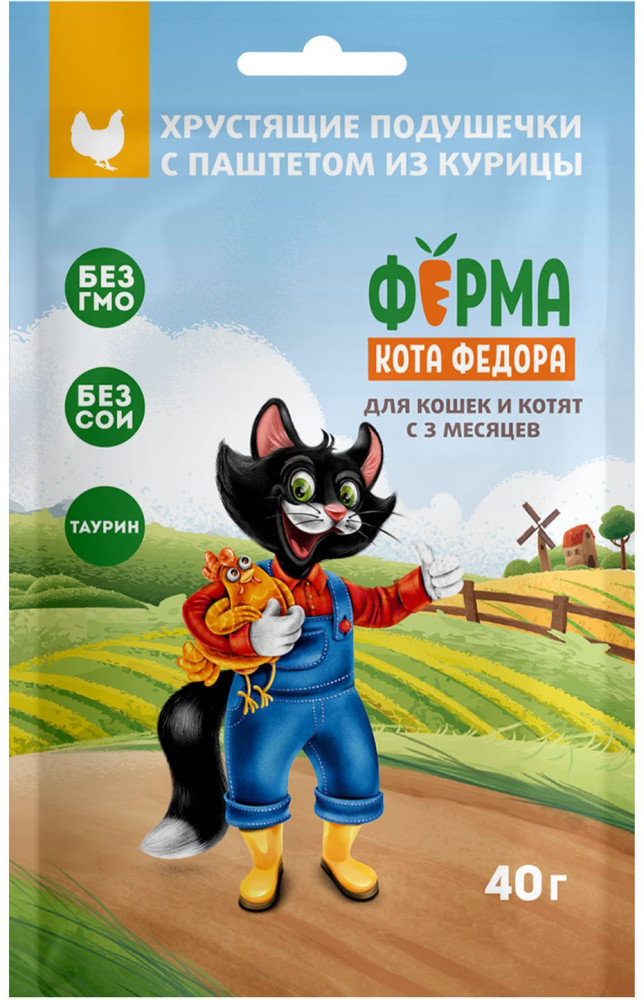 Ферма кота Федора Хрустящие подушечки для кошек и котят с паштетом из курицы