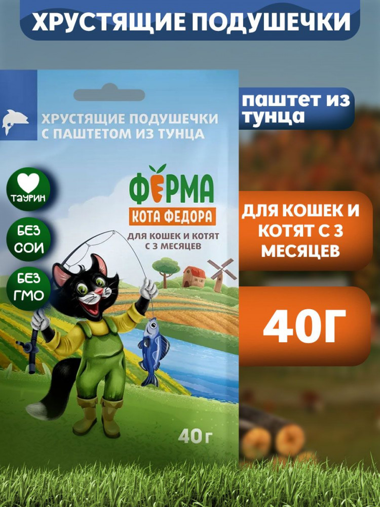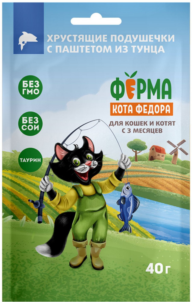 Ферма кота Федора Хрустящие подушечки для кошек и котят с паштетом из тунца