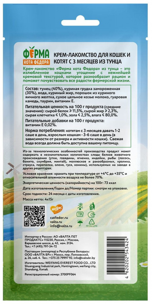 Ферма кота Федора Крем-лакомство для кошек и котят из тунца