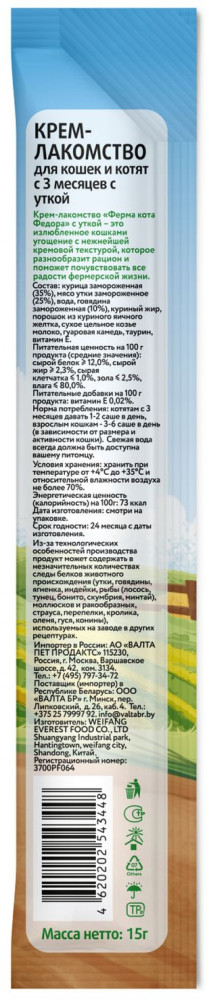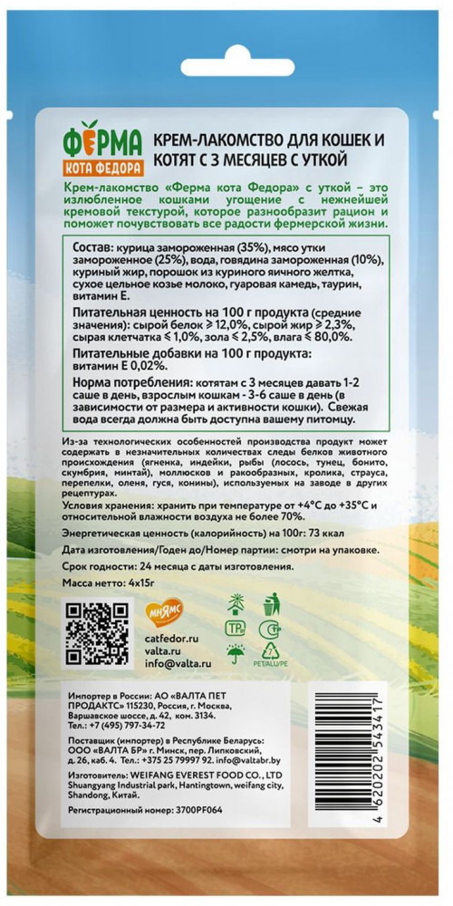 Ферма кота Федора Крем-лакомство для кошек и котят с уткой