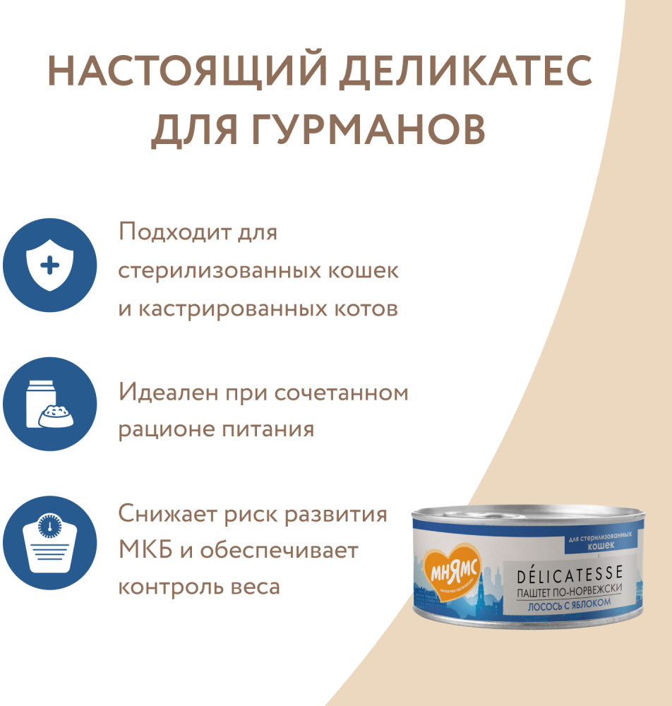 Мнямс Корм для кошек со вкусом лосося с яблоком «Паштет по-норвежски»