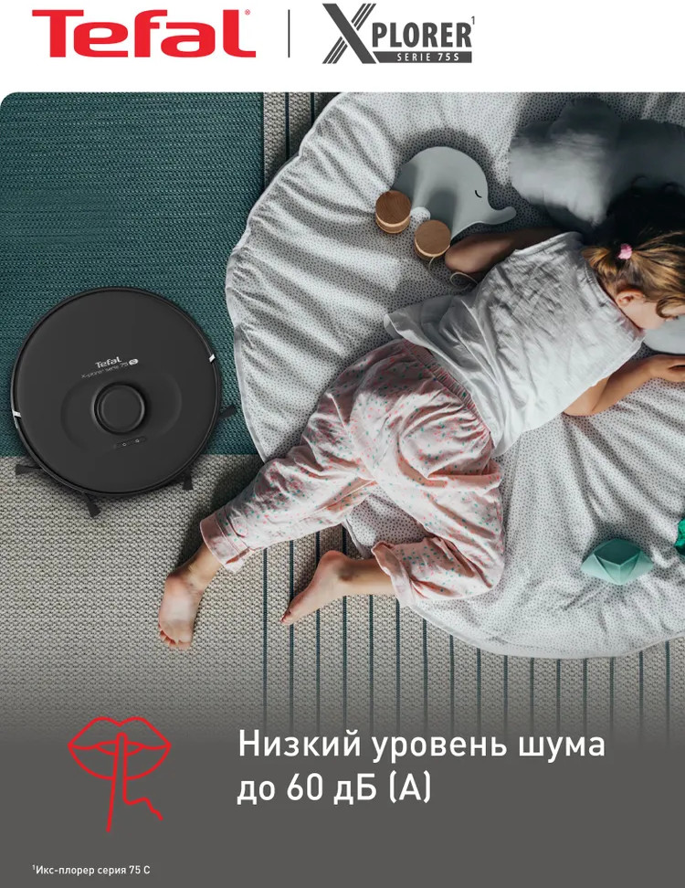 Надежный и емкий Li-ion аккумулятор обеспечивает до 150 минут автономной работы без подзарядки. Этого времени хватит, чтобы убрать большую квартиру или дом. Насладитесь тишиной во время уборки устройства в режиме ECO, не отвлекаясь от дел. Робот-пылесос не помешает членам вашей семьи смотреть телевизор и не напугает домашних животных при минимальном уровне шума 69 дБА.