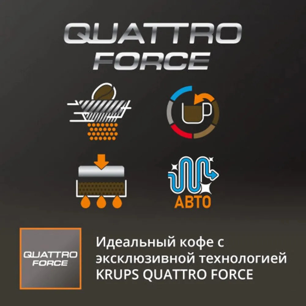 С автоматической кофемашиной KRUPS Evidence Plus вы одним касанием приготовите потрясающий ароматный кофе как настоящий бариста. Коническая кофемолка из нержавеющей стали эффективно и на высокой скорости измельчает зерна до нужного помола. Уникальная технология KRUPS QUATTRO FORCE сделает привычный домашний кофе произведением искусства. |