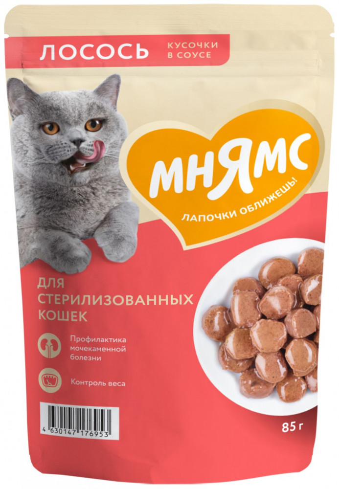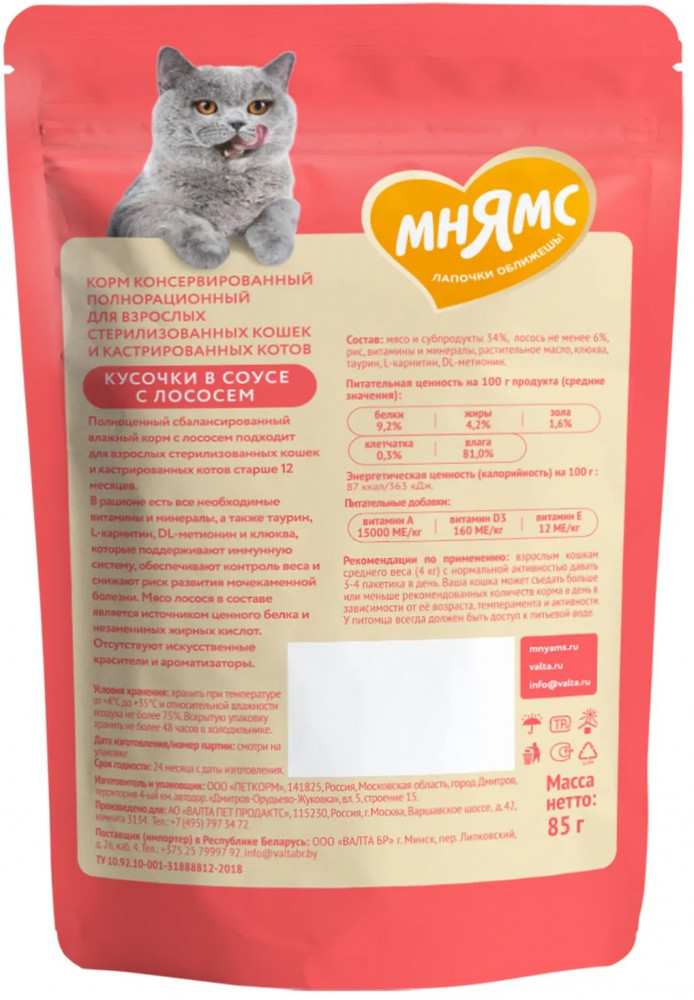 Мнямс Корм для кошек «Кусочки в соусе с лососем»