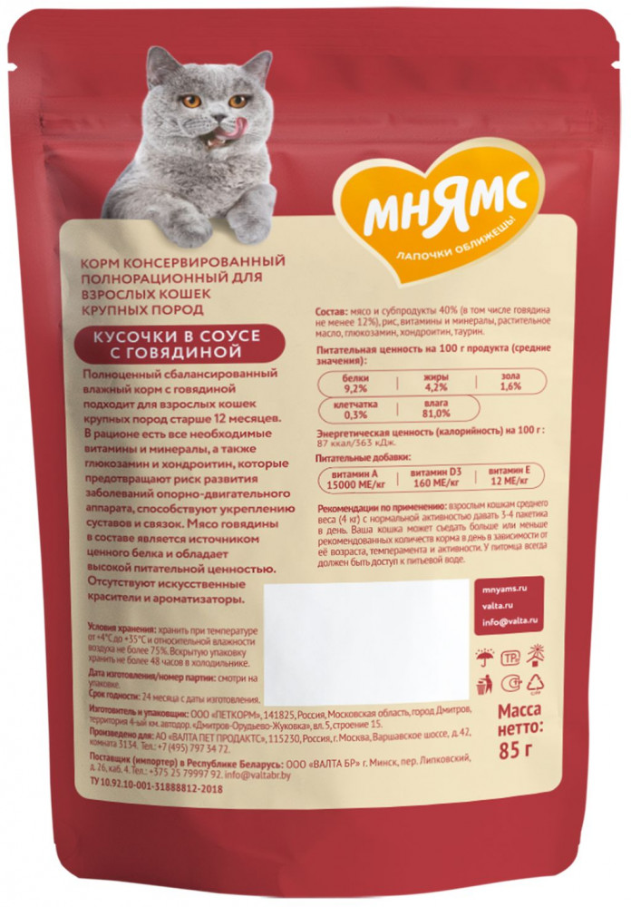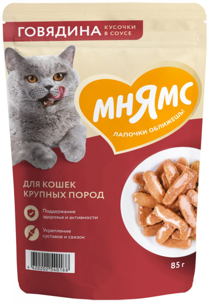 Мнямс Корм для кошек «Кусочки в соусе с говядиной»